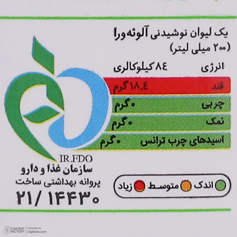 نوشیدنی آلوئه ورا تکدانه – 1 لیتر