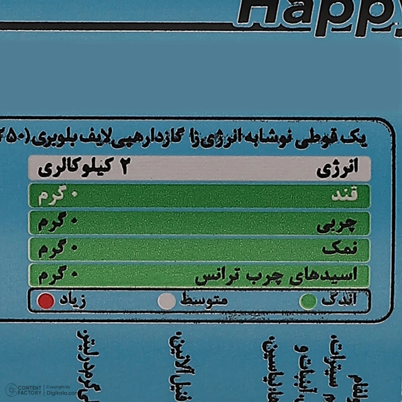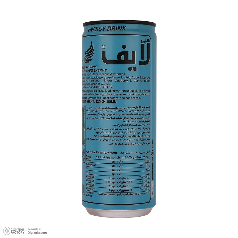 نوشیدنی انرژی زا بدون قند با طعم بلوبری هپی لایف – 250 میلی لیتر