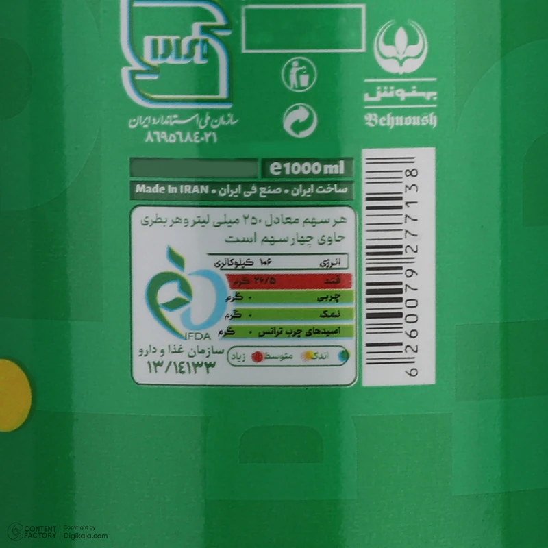 نوشیدنی لیموناد گاز دار بهنوش – 1 لیتر
