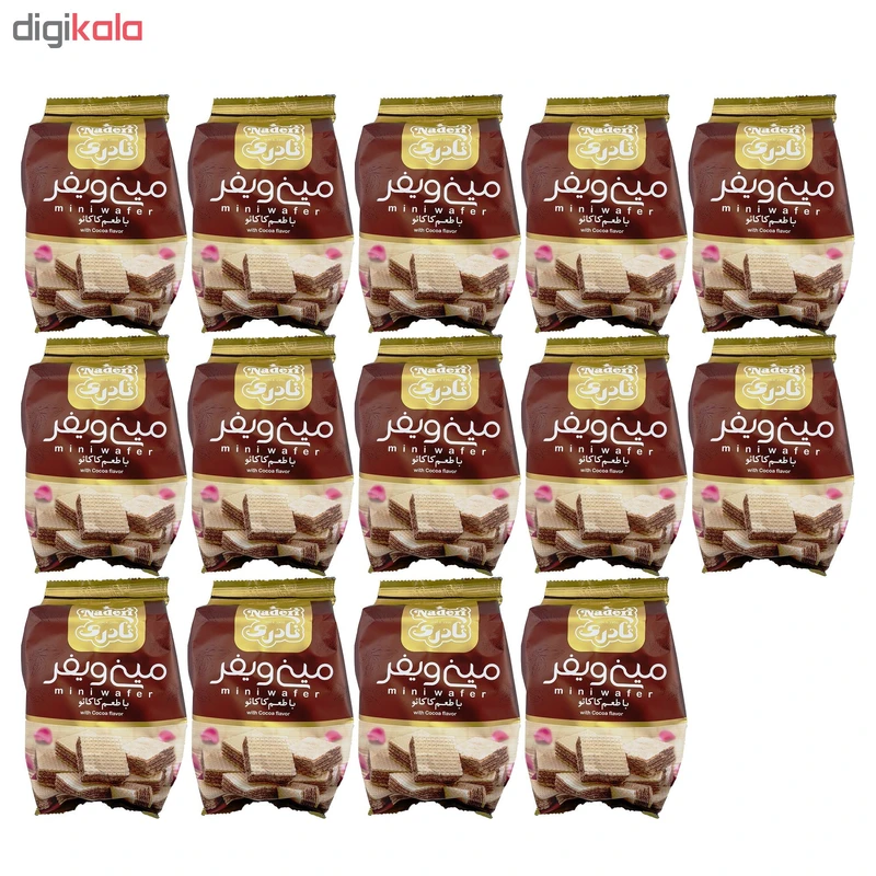 ویفر لقمه ای کاکائویی نادری مقدار 80 گرم بسته 14 عددی