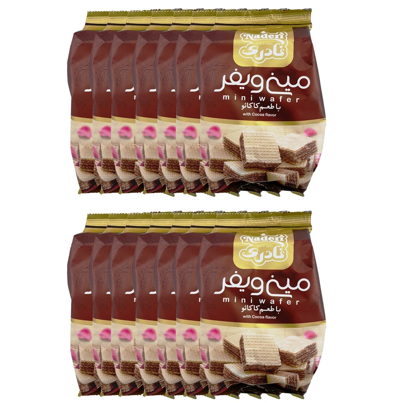 ویفر لقمه ای کاکائویی نادری مقدار 80 گرم بسته 14 عددی