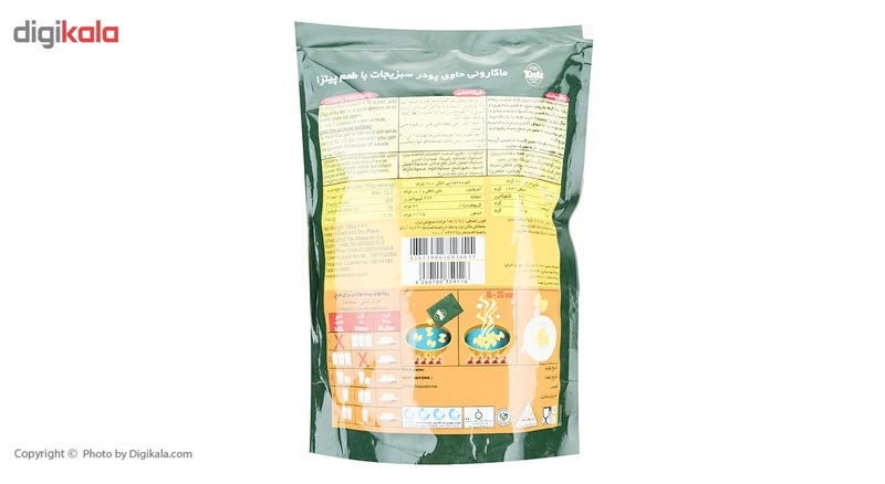 پاستا پروانه ای سبزیجات با طعم پیتزا تک ماکارون مقدار 180 گرمی