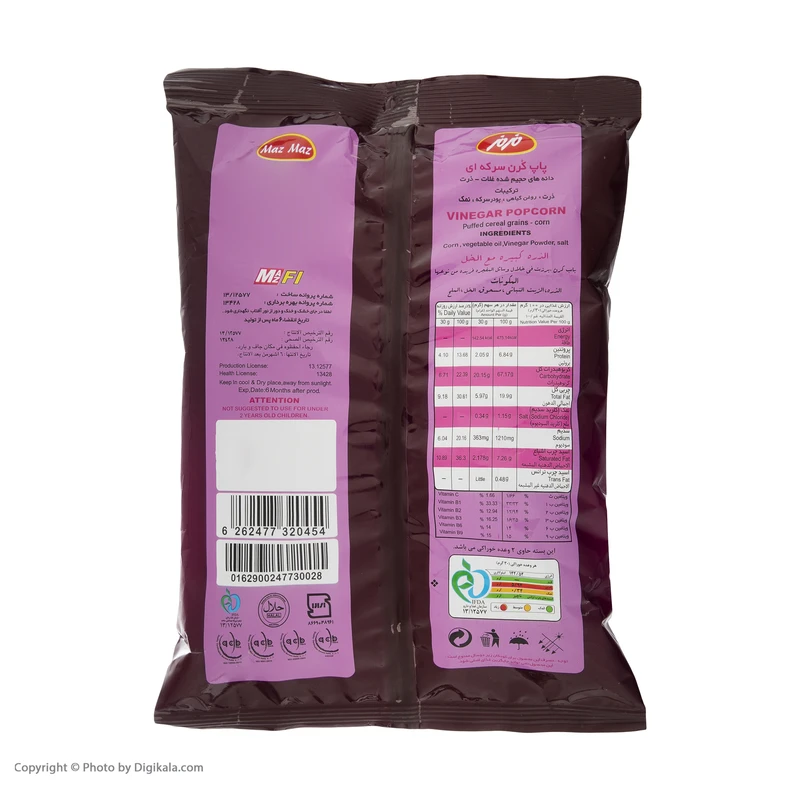 پاپ کرن سرکه ای مزمز مقدار 60 گرم