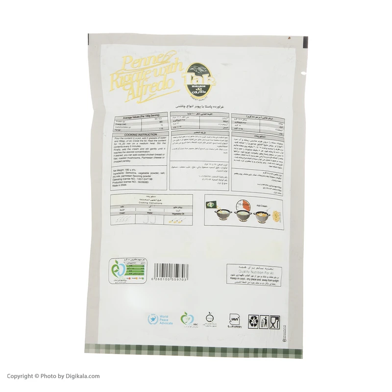 پنه ریگاته با سس آلفردو تک ماکارون – 180 گرم
