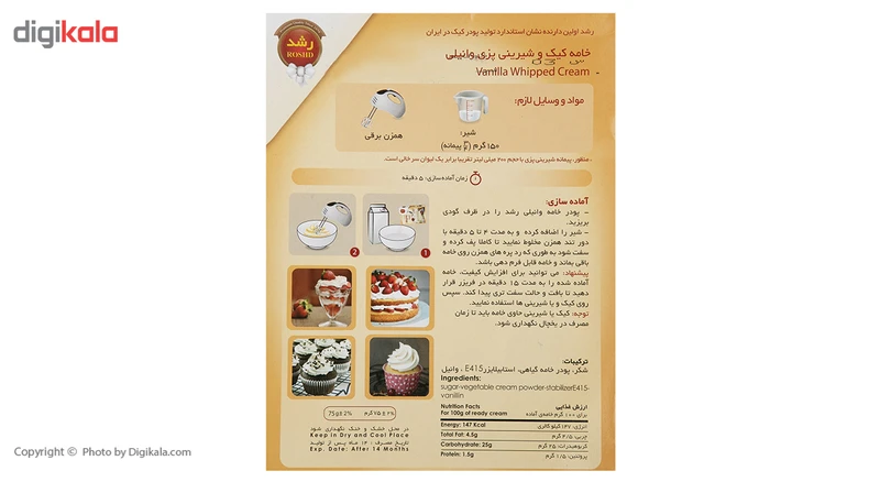 پودر خامه کیک و شیرینی پزی وانیلی رشد مقدار 75 گرم