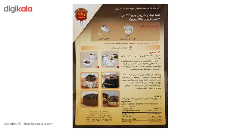 پودر خامه کیک و شیرینی پزی کاکائویی رشد مقدار 75 گرم