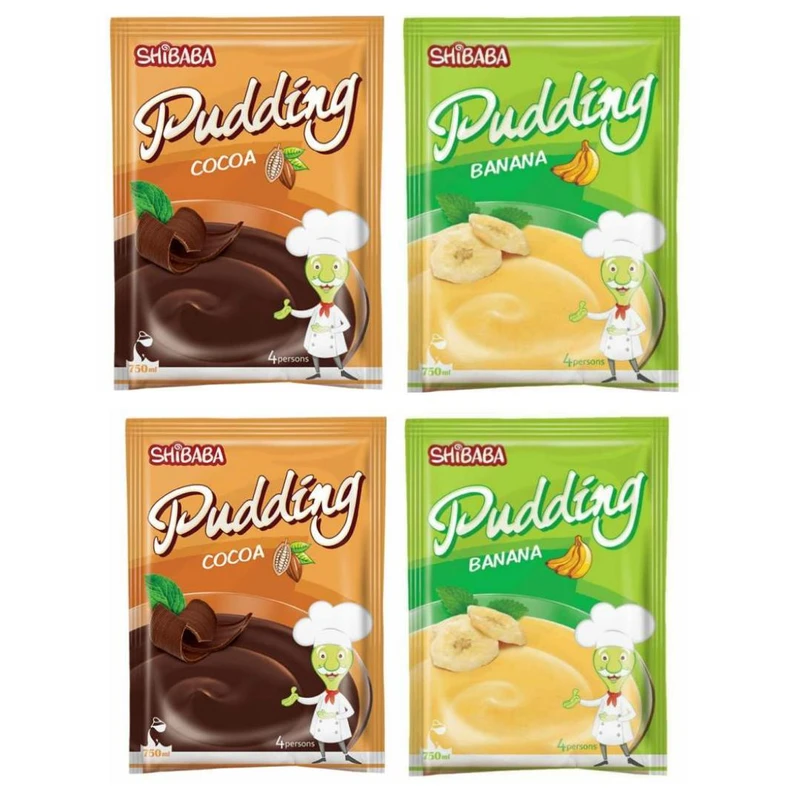 پودر پودینگ کاکائویی و موز فوری شیبابا – 100 گرم مجموعه 4 عددی