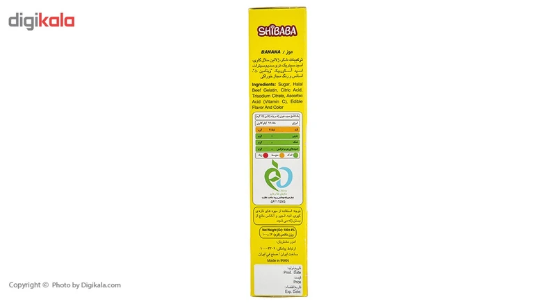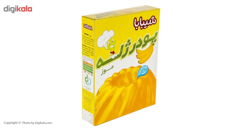 با پودر ژله با طعم میوه محبوب موز دسری با سلیقه خودتان درست کنید و همه را ذوق زده کنید. این پودر ژله موز محصول شیبابا است. شیبابا نام تجاری دسته‌ای از محصولات شرکت شیوا است که با پاستیل‌ها و آب‌نبات‌های خود در میان بازار جای خود را پیدا کرد. پودر‌های ژله‌ شیبابا از ترکیب شکر، ژلاتین، اسید سیتریک، تری سدیم سیترات، اسانس و رنگ های مجاز خوراکی تهیه می‌شوند. ژله‌های شیبابا فاقد نمک، چربی و اسیدهای چرب ترانس هستند. در این بسته‌بندی شیبابا 100 گرم از پودر ژله وجود دارد. ناگفته نماند ژله‌ای که با پودر ژله موز شیبابا درست می‌کنید، علاوه بر موادی که ذکر شد، حاوی مقدار قابل توجهی ویتامین C  است.