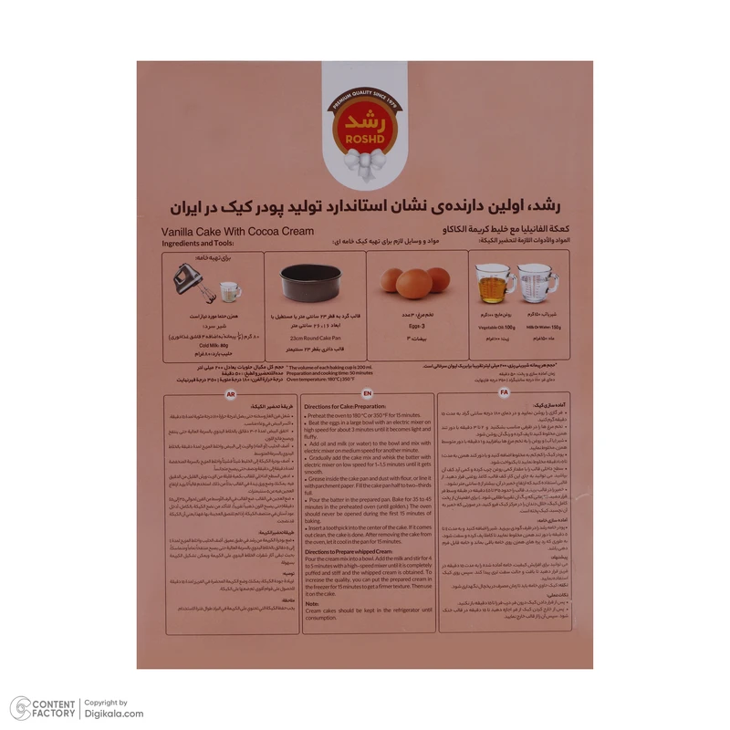 پودر کیک وانیلی با خامه کاکائویی رشد مقدار 500 گرم