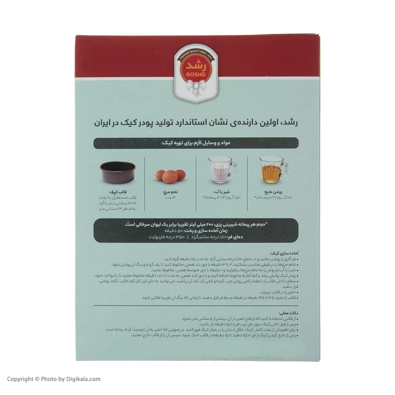 پودر کیک وانیلی رشد وزن 500 گرم میان وعده بسیار مناسبی است و میتواند انرژی مورد نیاز متعادل بدن به عنوان یک میان وعده را تامین کند. اگر شما هم از دوستداران انواع کیک هستید اما آنقدر در این حیطه حرفهای نیستید، و وقت کافی را ندارید میتوانید از پودر کیکهای نیمه آماده و متنوع رشد استفاده کنید تا با افزودن چندین قلم ساده به این پودر، کیک خوشمزهای را در کمترین زمان تهیه کنید. برای آماده کردن این کیک، کافی است 3 عدد تخممرغ را بشکنید (اگر میخواهید کیکتان پف بیشتری کند میتوانید از 4 عدد تخممرغ استفاده کنید) و آن را هم بزنید تا پف کند، سپس تخممرغ را به همراه آب یا شیر و روغن مخلوط کنید و پودر کیک را کم کم به آن اضافه کنید. بعد از آماده شدن خمیر کیک، آن را به مدت 30 الی 40 دقیقه در فر با دمای مناسب قرار دهید تا کیک آماده شود. بعد از خنک شدن کیک آن را به ظرف مورد نظرتان انتقال داده و میتوانید این کیک خوشمزه را همراه با خامه و میوه تزیین و میل نمایید. پودر کیک وانیلی رشد طعم های دیگری مانند كاكائويي دارد که میتوانید این محصول را از فروشگاه اینترنتی دیجیکالا تهیه کنید.
