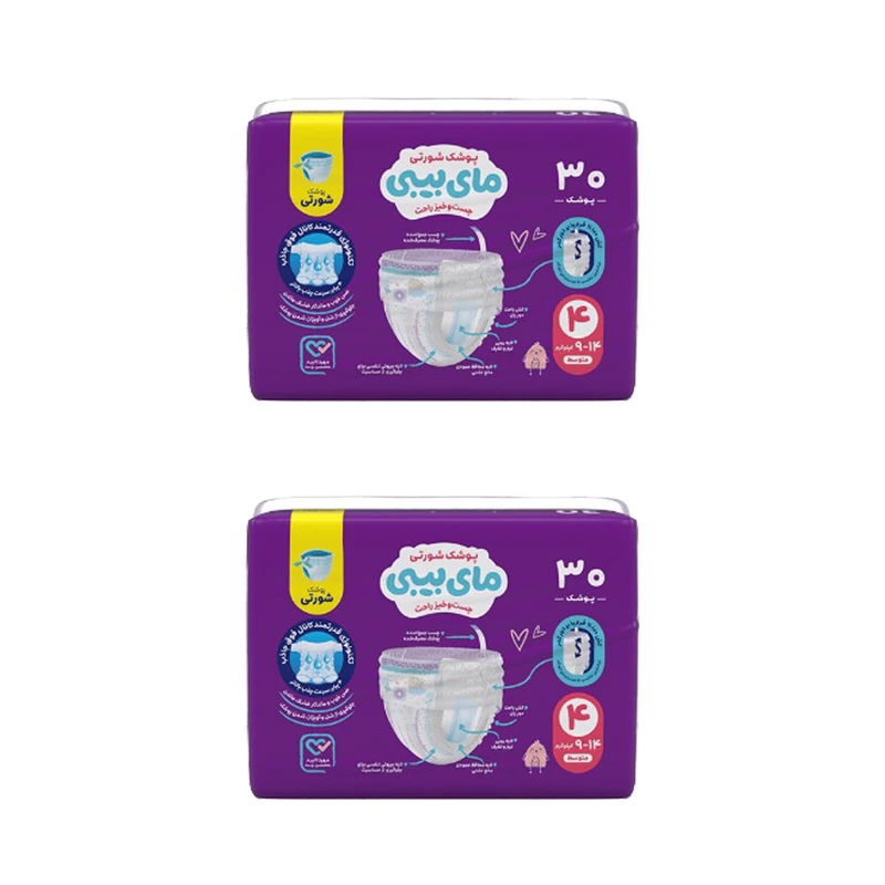پوشک شورتی مای بیبی مدل کانال دار سایز 4 دو بسته 30 عددی