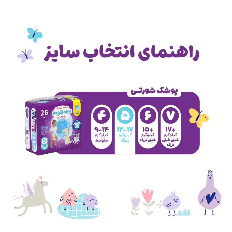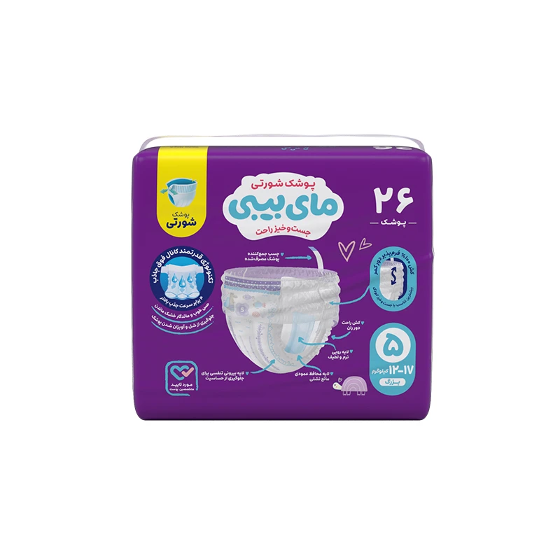 پوشک شورتی مای بیبی مدل کانال دار سایز 5 بسته 26 عددی