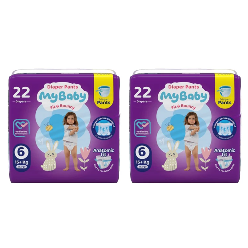 پوشک شورتی مای بیبی مدل کانال دار سایز 6 دو بسته 22 عددی
