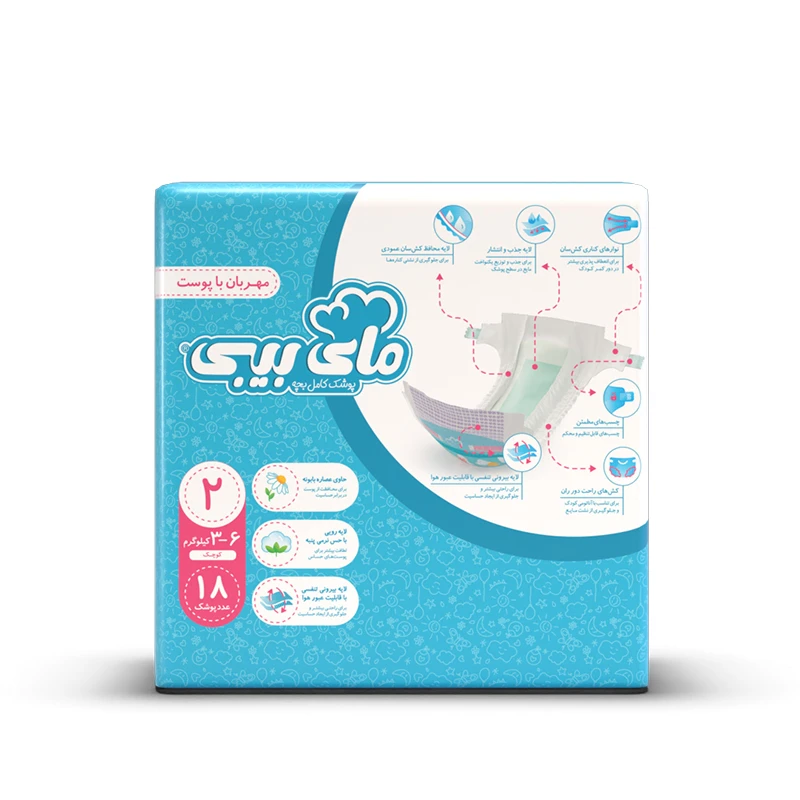 پوشک مای بیبی مدل سری مهربان با پوست سایز 2 بسته 18 عددی