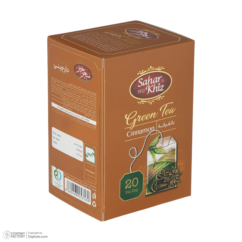 چای سبز کیسه‌ای دارچین سحرخیز 2 بسته 20 عددی