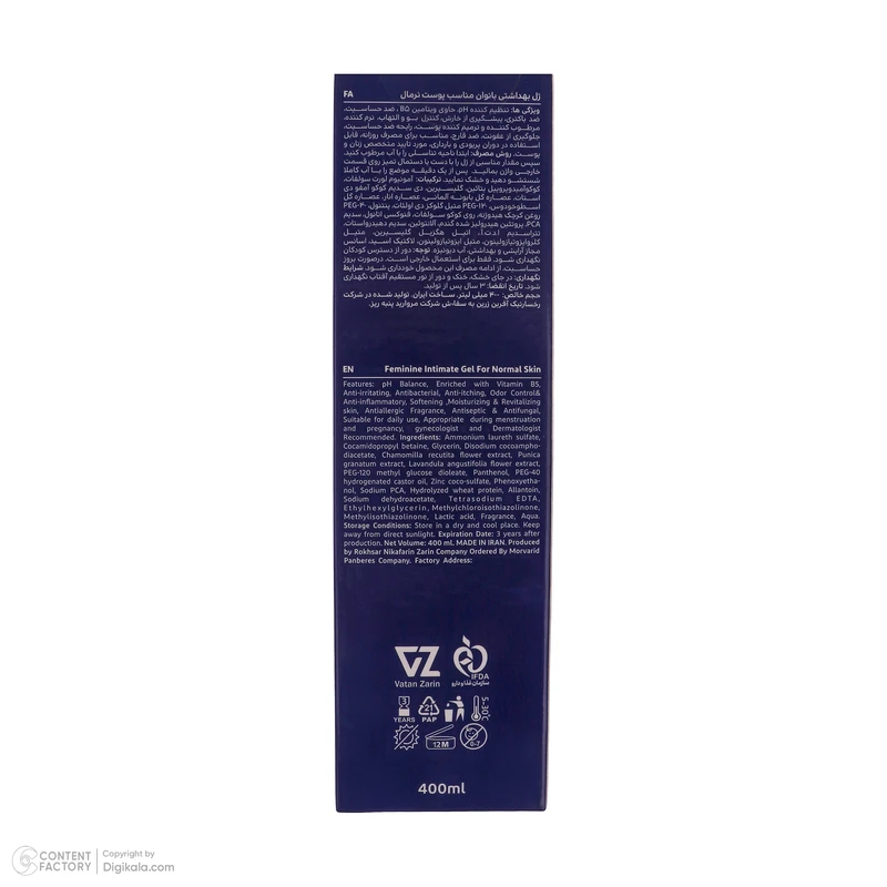 ژل بهداشتی بانوان پنبه ریز مدل 01 مناسب پوست معمولی حجم 400 میلی لیتر