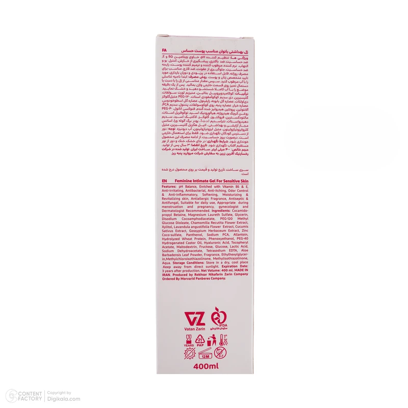 ژل بهداشتی بانوان پنبه ریز مدل 02 مناسب پوست حساس حجم 400 میلی لیتر