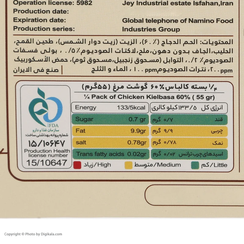 کالباس مرغ 60 درصد نامی نو – 200 گرم