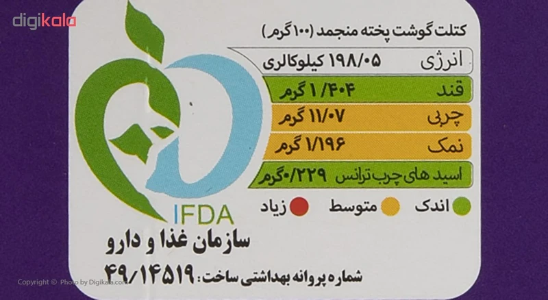 کتلت گوشت پمینا مقدار 450 گرم