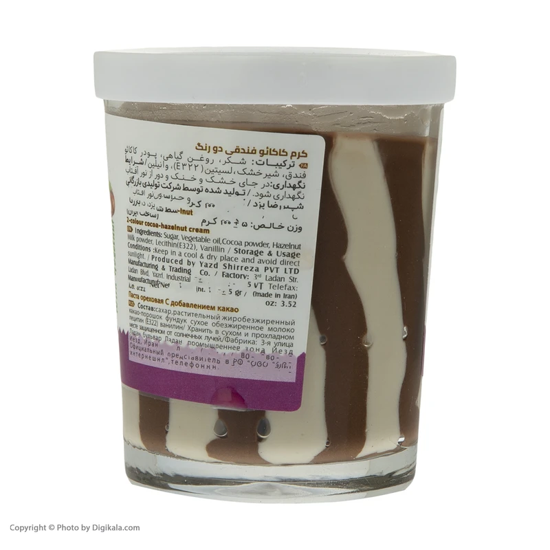 کرم کاکائو فندقی دو رنگ شیررضا – 100 گرم