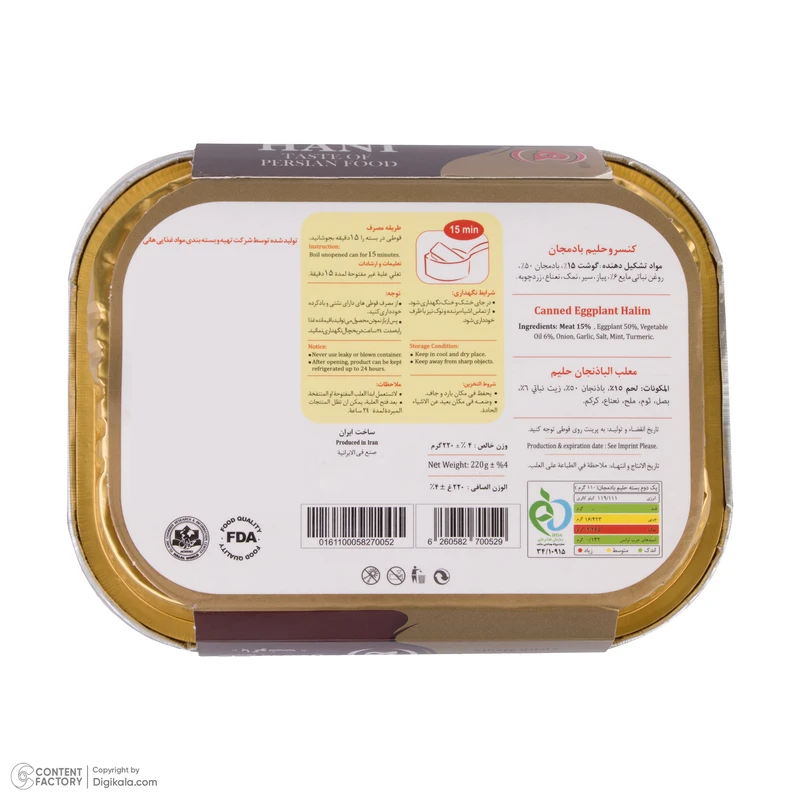 کنسرو حلیم بادمجان با گوشت هانی – 220 گرم