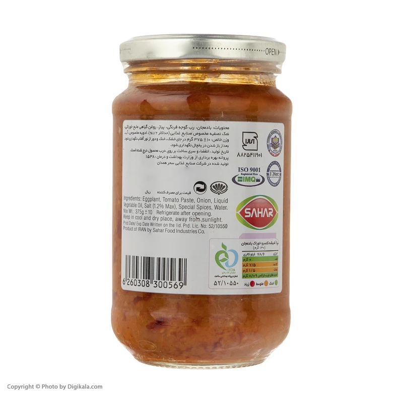 کنسرو خوراک بادمجان سحر – 375 گرم