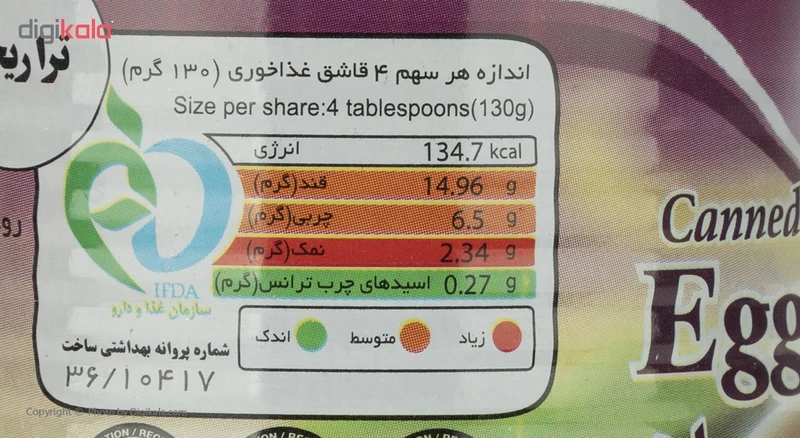 کنسرو خوراک بادمجان یک و یک – 365 گرم