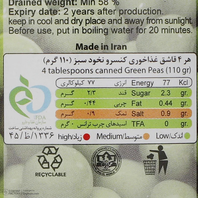 کنسرو نخود سبز فامیلا – 380 گرم